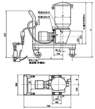 (1)润滑泵的外形尺寸 (2)带小车润滑装置外形尺寸