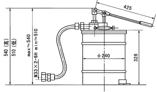 六、使用说明 1、使用时输油胶管一端接加油泵出口,另一端接贮油器补给口,使用完毕后另一端应拧在箱盖螺栓上。 2、使用的润滑脂必须干净,质地均匀,在规定牌号范围内。 3、应经常检查桶内油脂量,以免无脂时吸入空气混入贮油器内。