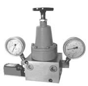 二、功能和结构说明 本阀为二位四通自动液压换向阀,上平面设有两块压力表和调压手轮。换向压力由手轮调节,顺时针压力升高,反之压力降低。本阀门进油口P与泵出油口连接,回油口R接贮油桶,供油口Ⅰ、Ⅱ分别与两条供油管路连接。工作时当Ⅰ路油压达设定压力,换向阀自动切换到Ⅱ路,这样润滑泵就能循环往复地向两条管路供送润滑脂。 三、技术参数