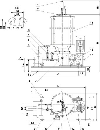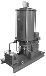 一、概述 DRB-L系列电动润滑泵适用于润滑点多,分布范围广,给油频率高的双线式干油集中润滑系统。通过双线分配器向润滑部位供送润滑脂,可满足各种机器设备的需要,对于大型机组和生产线尤为适宜。 该系列电动润滑泵可组成双线环式集中润滑系统,即系统的主管路组成环状布置,由返回润滑泵的主管道末端的系统压力来控制液压换向阀,使两条主管道交替地供送润滑脂的集中润滑系统;见外形图和外形尺寸表的规定。也可组成双线终端式集中润滑系统,即由主管道末端的压力操纵阀来控制电磁。换向阀交替地使两条主管道供送润滑脂的集中润滑系统,也见外形图和外形尺寸的规定。 该系列电动润滑泵采用双柱塞机构,运转可靠,减速机构置于泵体内,结构紧凑,体积小,配以相应的电控箱可以实现自动控制。